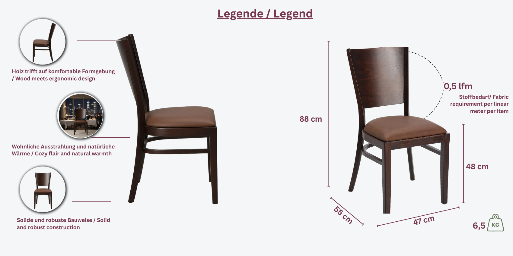 Ob als bequemer Esszimmerstuhl oder als vielseitig einsetzbarer Objektstuhl, der Holzstuhl "Susan" vereint klassische Optik mit modernen Anforderungen an Funktionalität und Langlebigkeit.