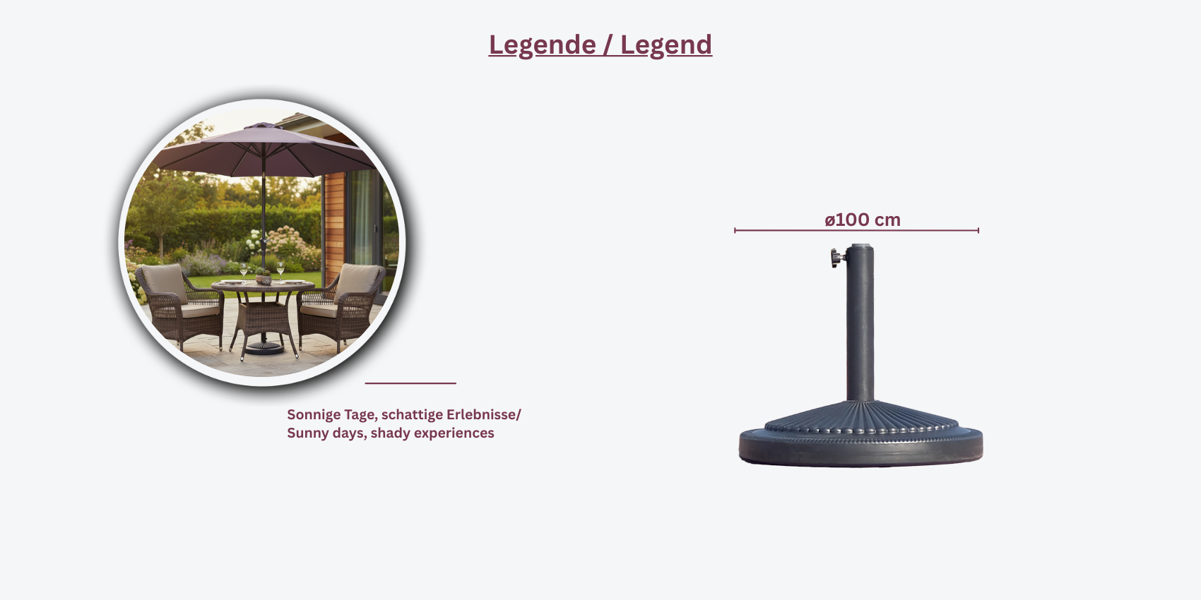 - Einsatzbereich: Optimal geeignet für den Sonnenschirm Cannes, aber auch kompatibel mit anderen Schirmen ähnlicher Größe und Gewichtsklasse