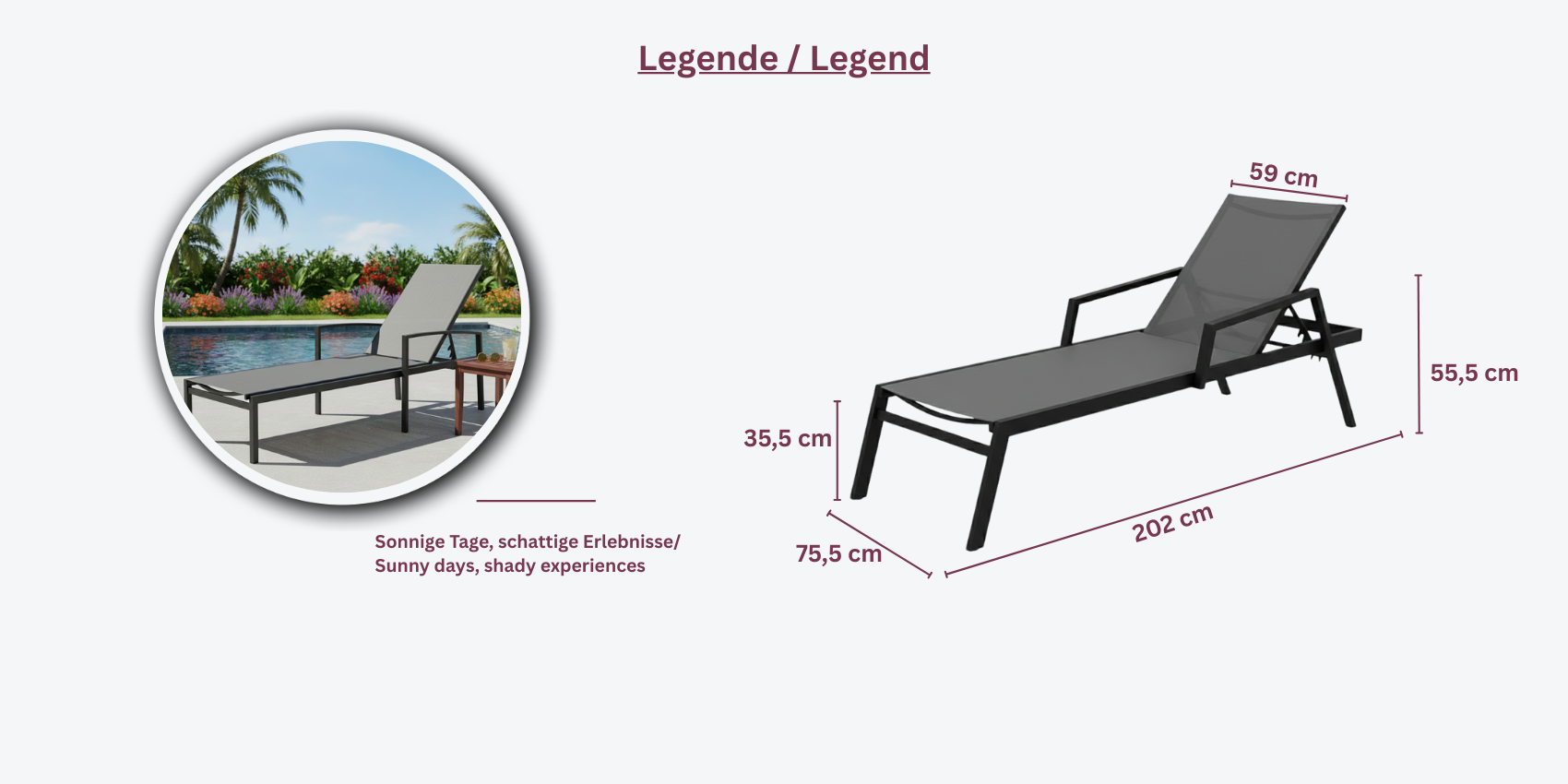Die Sonnenliege Fuerteventura ist der perfekte Begleiter für entspannte Stunden im Garten oder auf der Terrasse. Ihr modernes Design und die hochwertigen Materialien sorgen für Komfort und Langlebigkeit.
