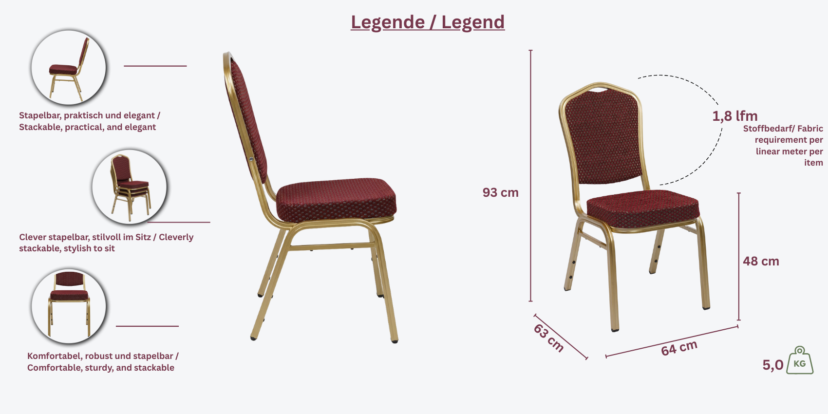 Der Stapelstuhl Amsterdam Alu kombiniert moderne Ästhetik mit funktionaler Robustheit. Das Aluminiumgestell ist in verschiedenen edlen Farbtönen verfügbar und die Sitz- sowie Rückenflächen können individuell gestaltet werden, um jedem Raum gerecht zu werden.