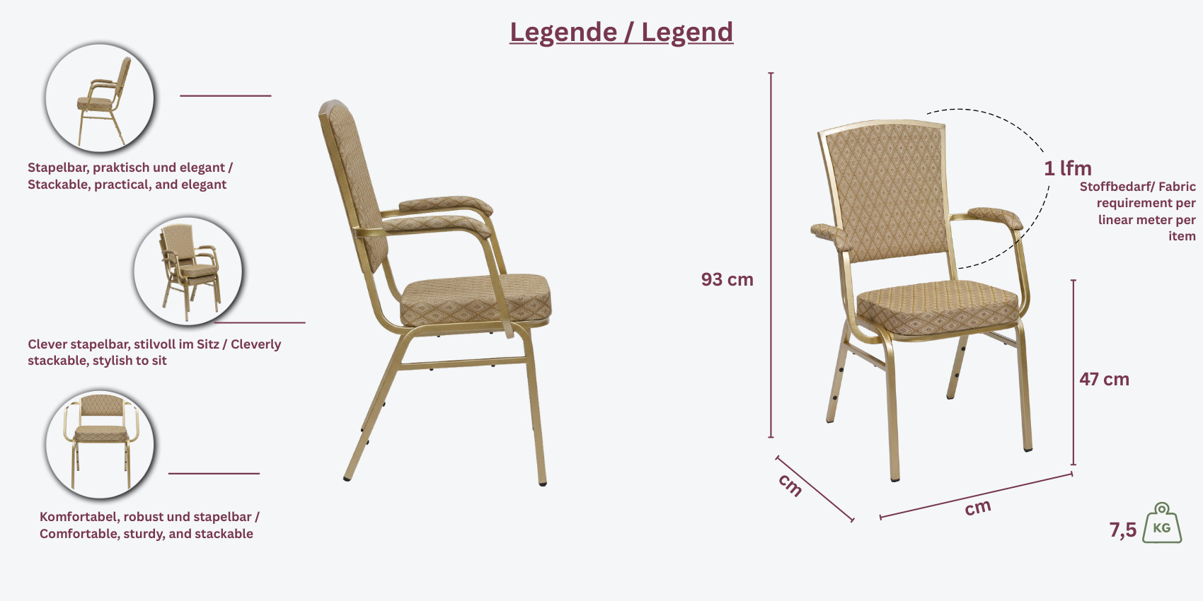 Der Chicago AL-Stuhl ist stapelbar und ermöglicht eine platzsparende Lagerung. Durch die Armlehnen wird der Sitzkomfort erhöht, was ihn zu einer ausgezeichneten Wahl für längere Sitzungen macht.