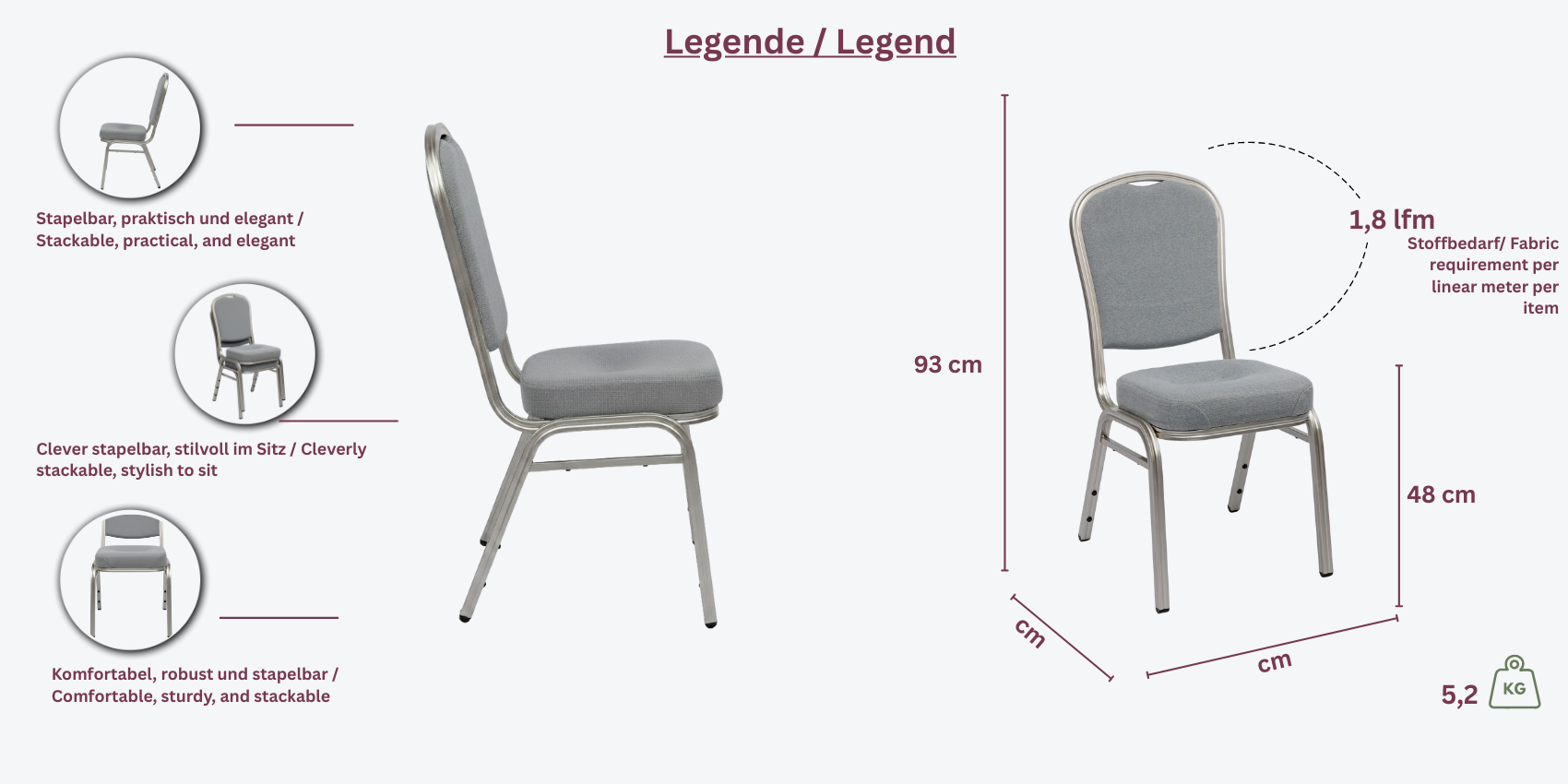 Der Sydney Stapelstuhl zeichnet sich durch sein robustes Aluminiumgestell und den komfortablen Ergo-Sitz aus. Er ist stapelbar, was die Lagerung und den Transport erleichtert. Ein stilvolles Design in verschiedenen Farboptionen macht diesen Stuhl zu einer attraktiven Wahl für jede Veranstaltung.