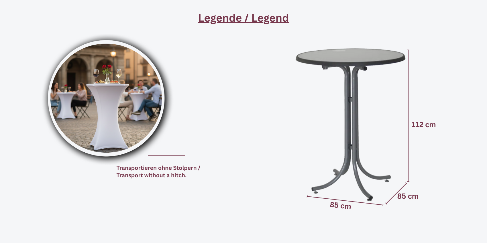 Der Stehtisch Easy High ist eine hochwertige und klappbare Lösung für verschiedene Events und Veranstaltungen. Mit einem stabilen Gestell und einer wetterfesten Platte bietet dieser Tisch sowohl Funktionalität als auch modernes Design.