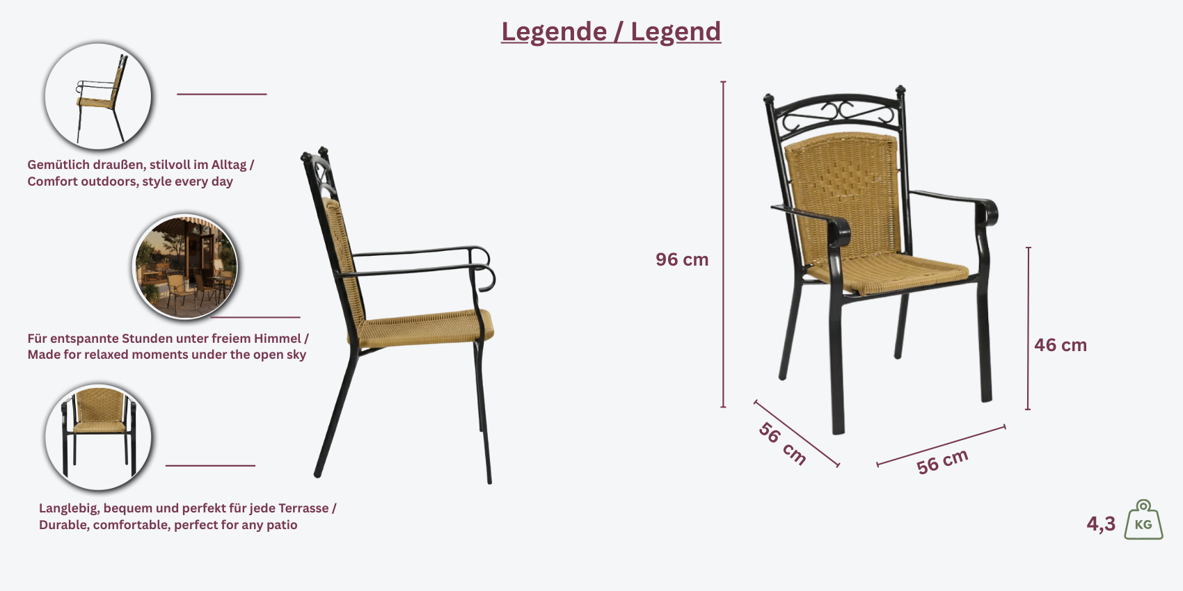 Der Cappuccino Stapelsessel kombiniert elegantes Design mit praktischer Funktionalit und ist eine ideale Wahl f Ihre Terrasse, Ihren Garten oder Balkon. Mit seiner stilvollen cappuccinofarbenen Ausfrung und der robusten Bauweise bringt dieser Sessel sowohl Komfort als auch thetik in Ihren Aunbereich.
