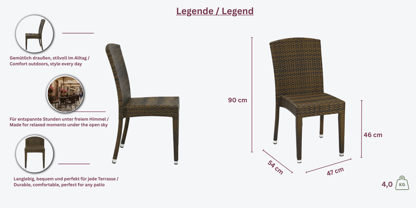 Der Stapelsessel Juno bietet eine gelungene Kombination aus modernem Design und praktischer Funktionalit und ist eine ausgezeichnete Wahl f Ihre Terrasse, Ihren Garten oder Balkon. Mit seiner eleganten und stabilen Bauweise ft sich dieser Sessel harmonisch in jede Aunumgebung ein und sorgt f Komfort und Stil.