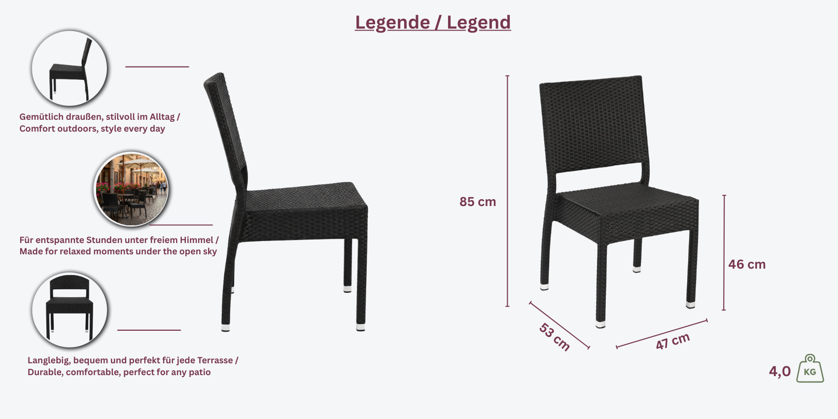 Der Jupiter Stapelsessel bietet eine perfekte Kombination aus stilvollem Design und praktischer Funktionalit und ist ideal f Terrassen, Gten oder Balkone. Mit seiner eleganten und stabilen Bauweise bringt dieser Sessel sowohl Komfort als auch thetik in Ihren Aunbereich.