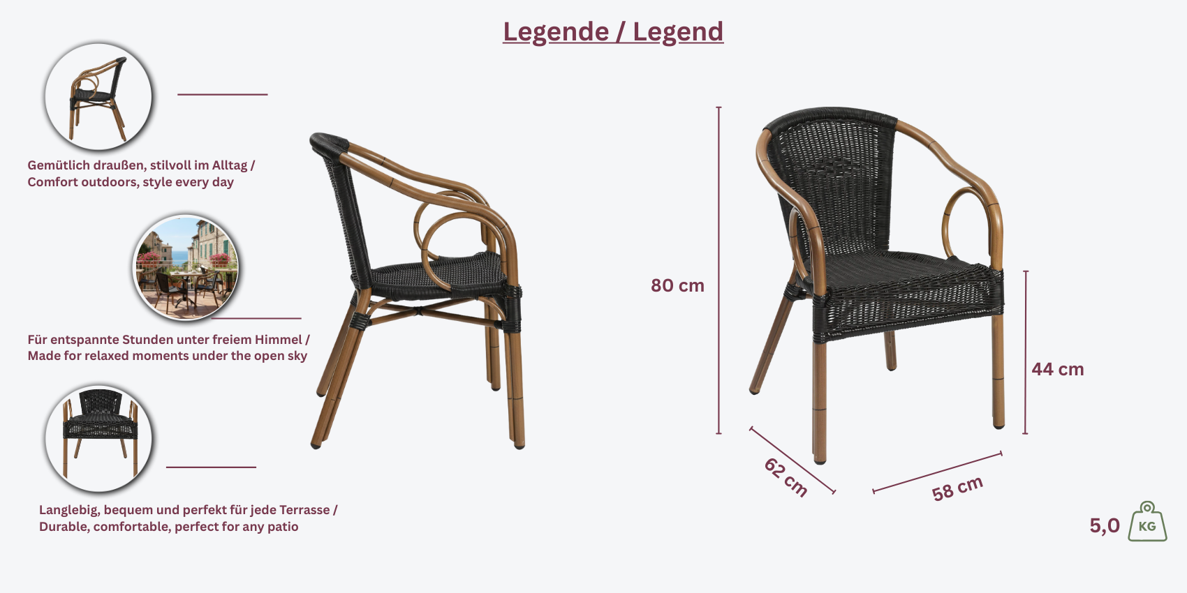 Der Marino Stapelsessel in Schwarz vereint elegantes Design mit praktischer Funktionalit und ist die ideale Wahl f Ihre Terrasse, Ihren Garten oder Balkon. Mit seiner modernen schwarzen Farbgebung und robusten Bauweise bringt dieser Sessel sowohl Stil als auch Komfort in Ihren Aunbereich.