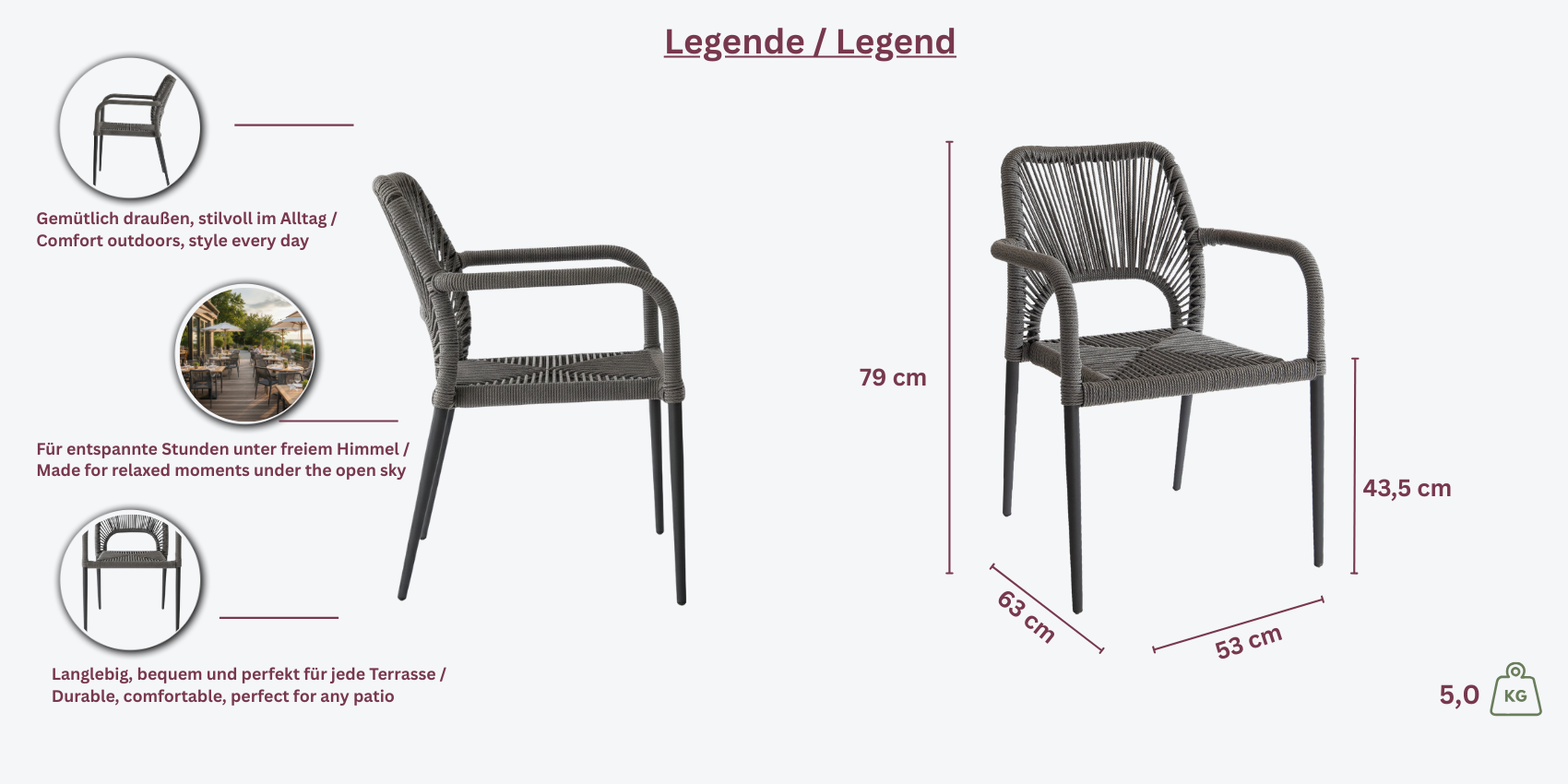 - Charmante Details: Der Rücken aus Seilgeflecht verleiht dem Stuhl eine besondere Note und macht ihn zum Highlight Ihrer Terrasse.