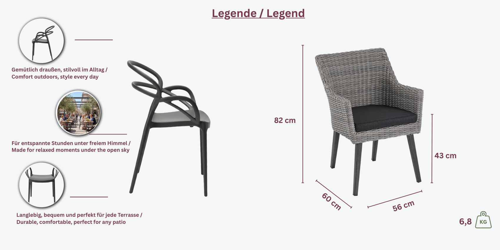 Der Oberon Stapelstuhl bietet eine harmonische Kombination aus zeitlosem Design, hervorragender Funktionalit und robustem Komfort. Dieser Stuhl ist die ideale Wahl f Aunbereiche wie Terrassen, Gten oder Balkone und verleiht Ihrem Aunbereich eine elegante und moderne Note.