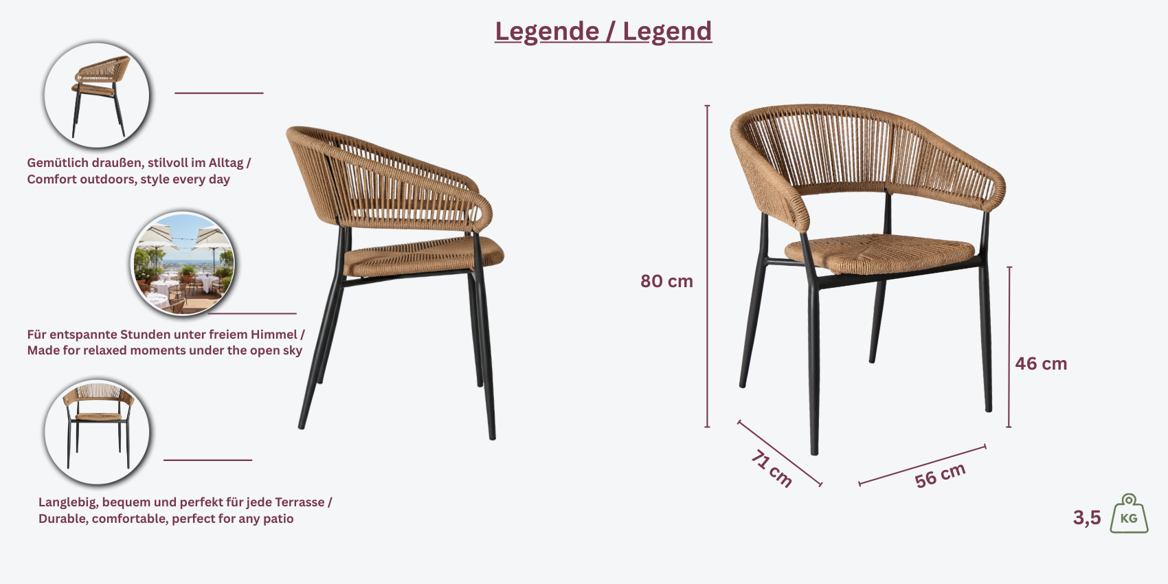 - Pflegeleichtes Geflecht: Das Seilgeflecht in Honey ist sowohl pflegeleicht als auch widerstandsfähig gegenüber Witterungseinflüssen.