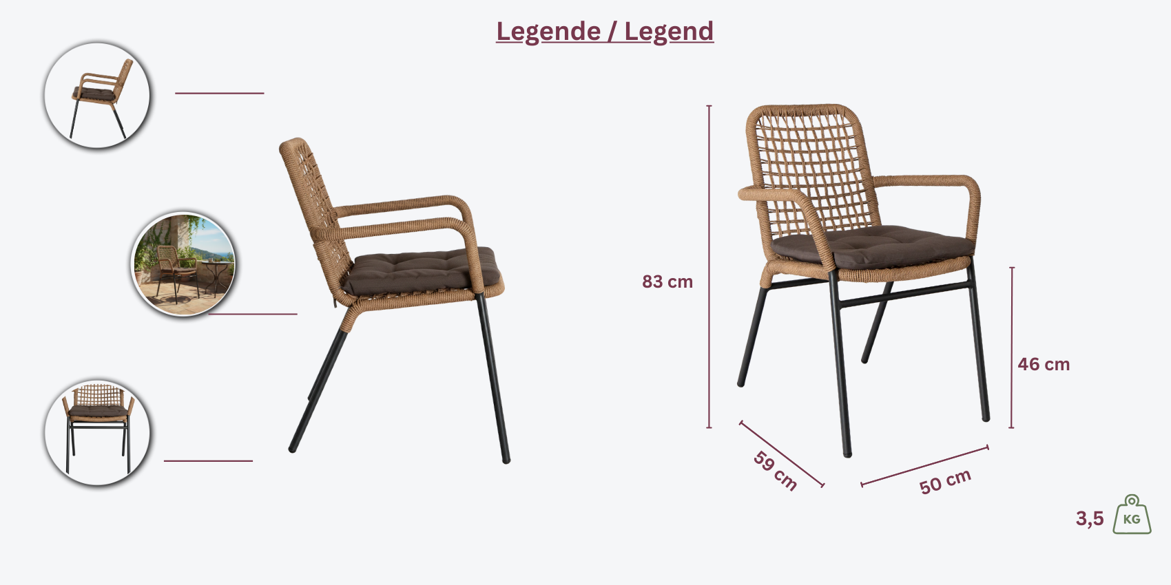 - Pflegeleichtes Geflecht: Das Honey-Seilgeflecht ist sowohl optisch ansprechend als auch pflegeleicht und sorgt für eine lange Lebensdauer des Stuhls.