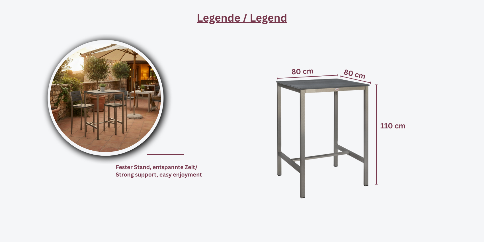 Ideal für Terrassen, Gärten oder stilvolle Outdoor-Lounges – dieser Stehtisch überzeugt durch seine edle Optik und Widerstandsfähigkeit!