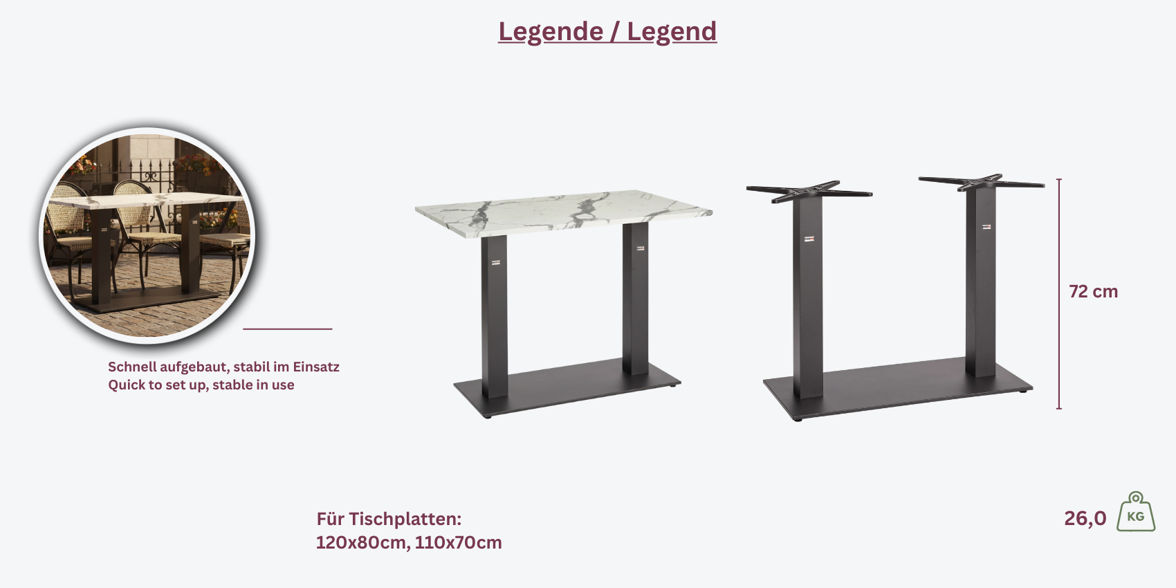 Das **Borkum double** Tischgestell von Garden Emotion in Anthrazit ist die perfekte Wahl für eine moderne und stilvolle Einrichtung. Mit seinem robusten Aluminiumgestell, das pulverbeschichtet ist, bietet es nicht nur eine elegante Optik, sondern auch eine lange Haltbarkeit und Stabilität.