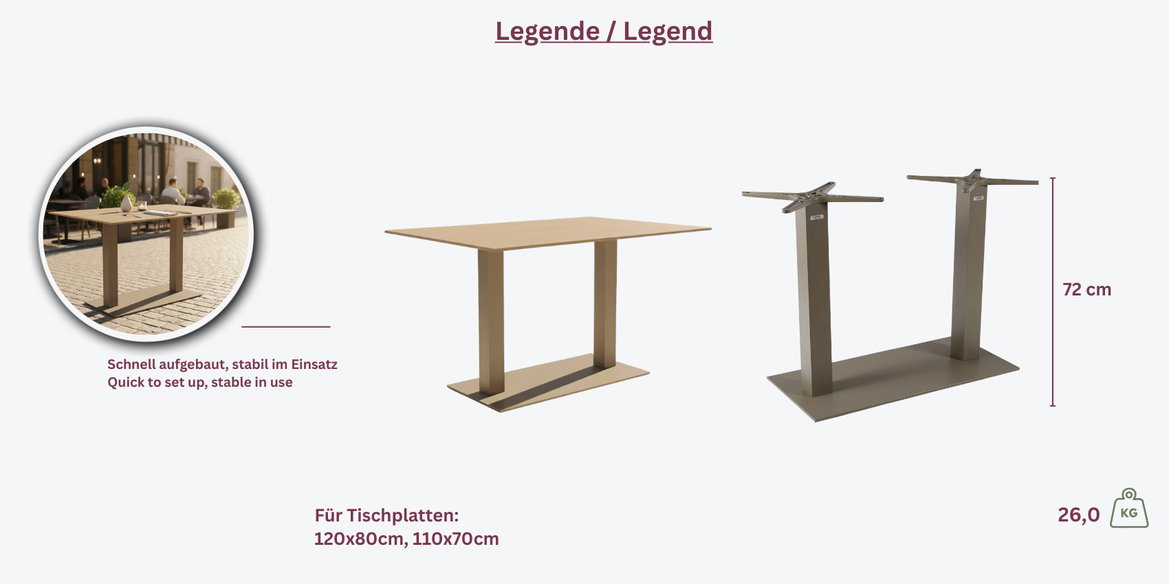 Das **Borkum double** Tischgestell von Garden Emotion kombiniert modernes Design mit Funktionalität und ist in einem eleganten Greige-Farbton pulverbeschichtet. Ideal für eine stilvolle und langlebige Tischlösung.