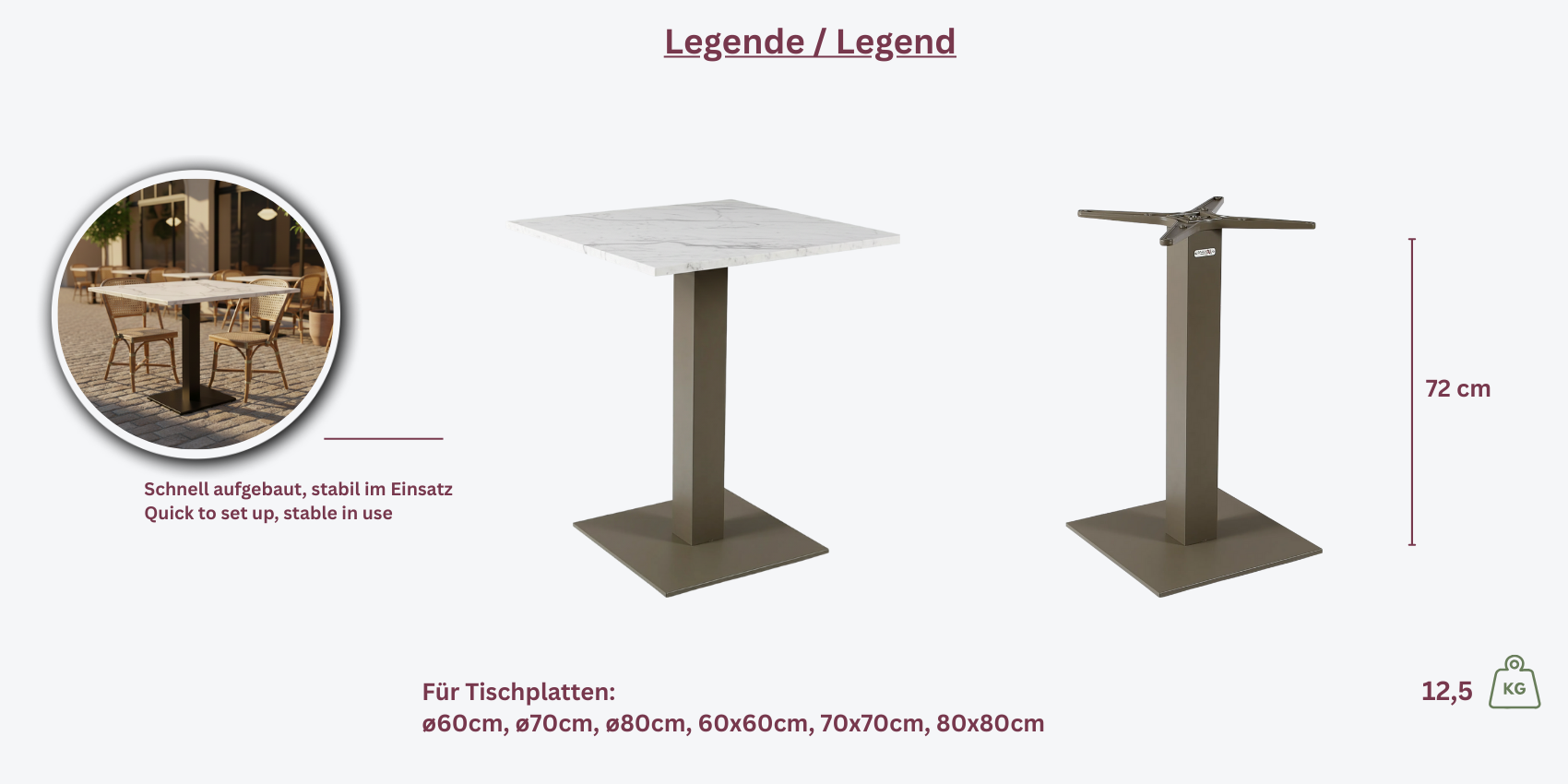 Das **Borkum eckig** Tischgestell von Garden Emotion bietet eine moderne und stilvolle Lösung für verschiedene Tischplatten. Mit seiner pulverbeschichteten Aluminium-Oberfläche in Greige verleiht es jedem Raum einen eleganten Touch.