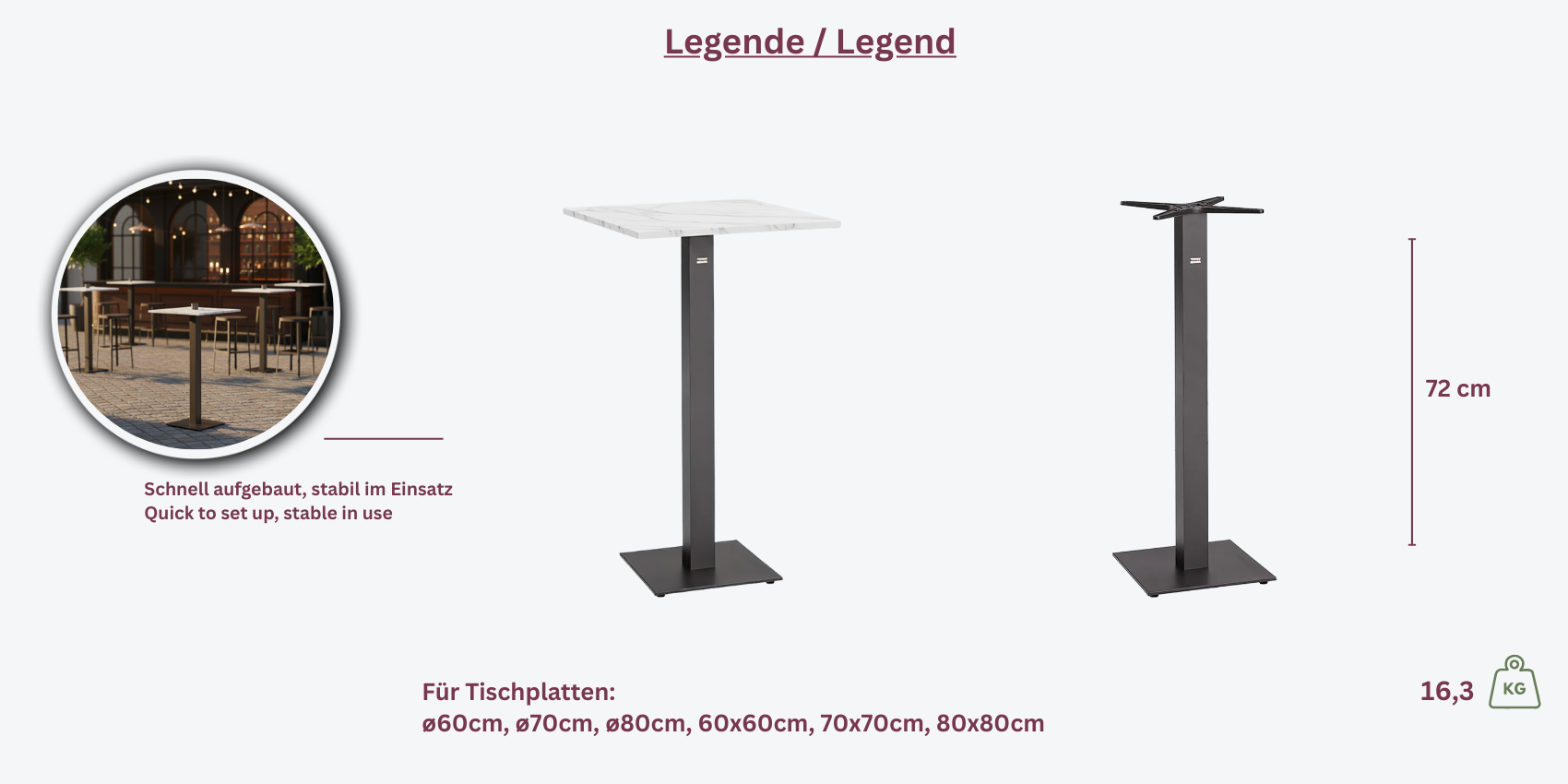 Geeignet für Tischplattengrößen: