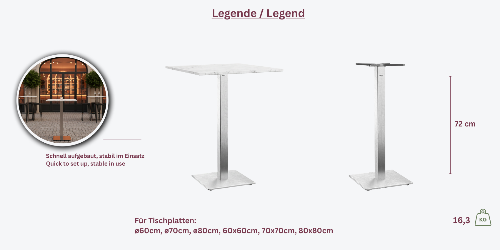Produktinformationen "Tischgestell Borkum high eckig brushed"