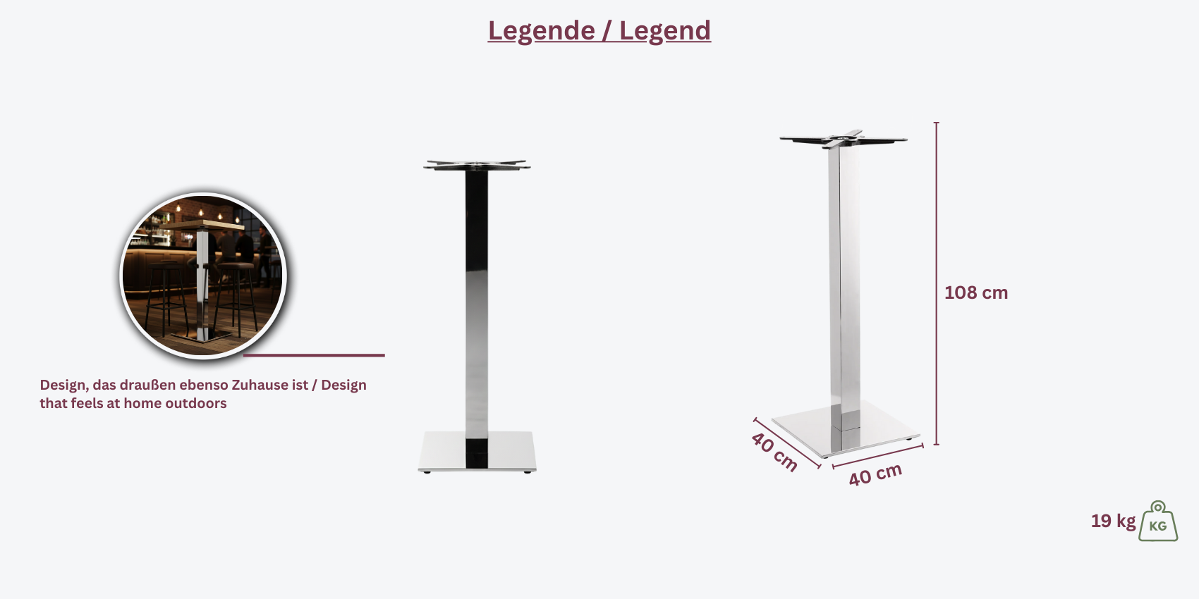 Dieses Stehtischgestell besitzt eine verchromte Bodenplatte und eine Höhe von 108 cm, die für Stehtische perfekt geeignet ist. Es bietet Stabilität und eine ansprechende Ästhetik.