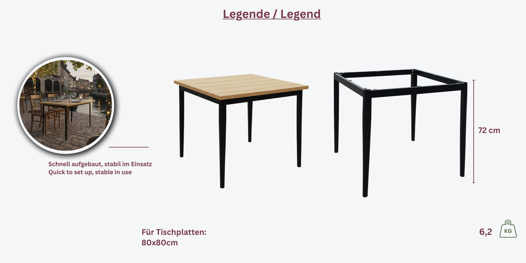 Das **Capri 80** Tischgestell in **Anthrazit** überzeugt durch sein schlichtes, modernes Design und die hochwertige Verarbeitung. Mit einer Höhe von 72 cm ist es ideal für Tischplatten mit den Maßen 80x80 cm geeignet.