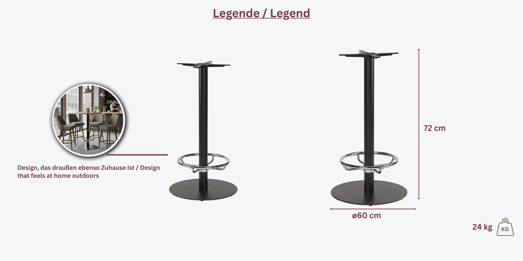 Das Tischgestell F-06000H von Bison ist eine hochwertige Lösung aus Gusseisen, das sowohl Stabilität als auch Eleganz bietet. Es eignet sich ideal für verschiedenste Tischplatten und ist besonders für höhere Tischformen konzipiert.