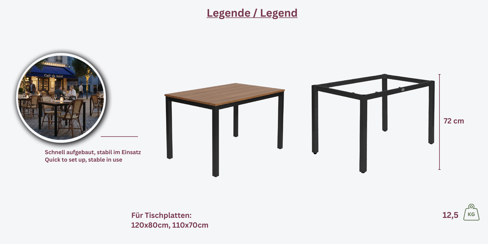 Das **Lexus 120** Tischgestell in **Schwarz** kombiniert modernes Design mit hochwertiger Verarbeitung. Mit einer Höhe von 72 cm ist es ideal für Tischplatten mit den Maßen 120x80 cm geeignet.